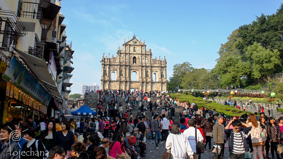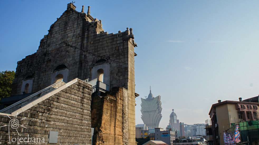 Podczas podróży z reguły towarzyszy nam fart i jak rozumu zabraknie, to zawsze pozostaje szczęście, którego przysłowiowo ma być więcej. Nie tym razem… Zrealizowaliśmy tylko pierwszy punkt planu. Przespacerowaliśmy się głównymi ulicami miasta by dotrzeć na uroczy Senado Square, który mimo olbrzymiej świątecznej choinki, skojarzył mi się z Wenecją. Dalej, ulicami wpisanego na listę dziedzictwa UNESCO zabytkowego miasta, z azjatycką wrzawą i pastelowymi okiennicami w południowym stylu, do ruin Katedry św. Pawła, a właściwie jedynej pozostałej (lecz wciąż imponującej) ściany. Warto wspiąć się na sam szczyt prowadzących do jej stóp schodów- rozpościera się stąd wspaniały widok.