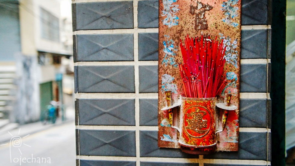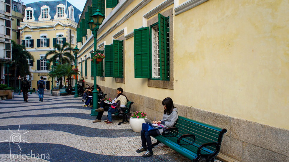 Punkt następny, decydujący- nocleg. Uzbrojeni w listę (naprawdę długą) hosteli, które nie mają stron www (więc nie mogliśmy sprawdzić ich dostępności przed przyjazdem) ruszyliśmy krętymi, wznoszącymi się i opadającymi uliczkami na poszukiwania dachu nad głową. Dzięki temu spacerowi, który przerodził się w męczący slalom odkryliśmy: kilka nowych smaków i zapachów, że informacje w internecie bywają bardzo nieaktualne (w miejscu jednego hostelu była już tylko dziura w ziemi), że ulice o wdzięcznie brzmiących portugalskich nazwach potrafią się kończyć zupełnie niespodziewanie i bez powodu, a przede wszystkim, że hostel (czyt. nocleg w cenie europejskiego hotelu w standardzie azjatyckiego hostelu) w Makau trzeba rezerwować z dużym wyprzedzeniem.