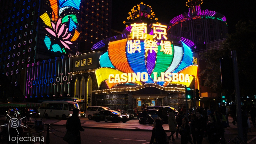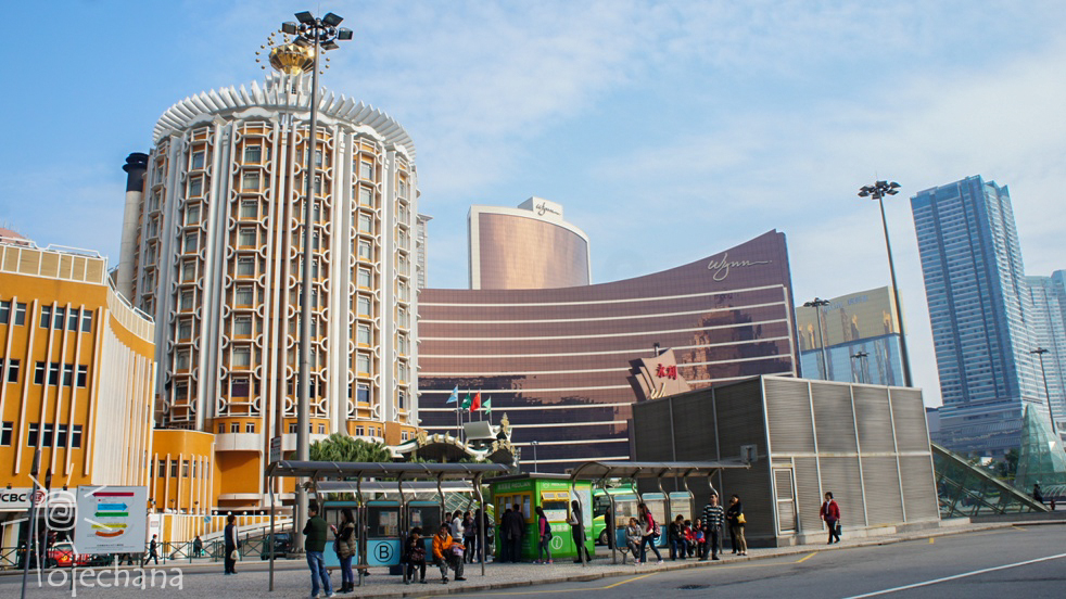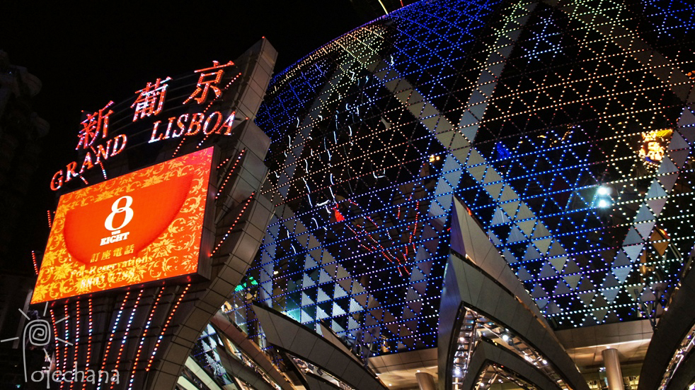 Z Shenzhen do Makau można dotrzeć drogą lądową (autobusem) lub (szybciej) łodzią- wybraliśmy tą drugą opcję. Miasto przywitało nas bardzo serdecznie: bezchmurnym niebem i machnięciem ręki kierowcy autobusu na opłatę, gdy powiedzieliśmy, że nie mamy drobnych. Prosto z portu na Taipa pojechaliśmy na „właściwą” wyspę, gdzie pod smutnym za dnia budynkiem kasyna Grand Lisboa rozpoczęliśmy swoją wędrówkę. Plan był taki- ogólnie się rozejrzeć, zjeść „galinga africana” (kurczaka z rożna w sosie z kokosa, czosnku i chilli), z którego słynie Makau, znaleźć nocleg (hostele, w których próbowaliśmy zarezerwować pokój przez internet były pełne), zobaczyć wytypowane demokratycznym trybem główne atrakcje i… jeśli fantazji i funduszy wystarczy może zajrzeć do kasyna?