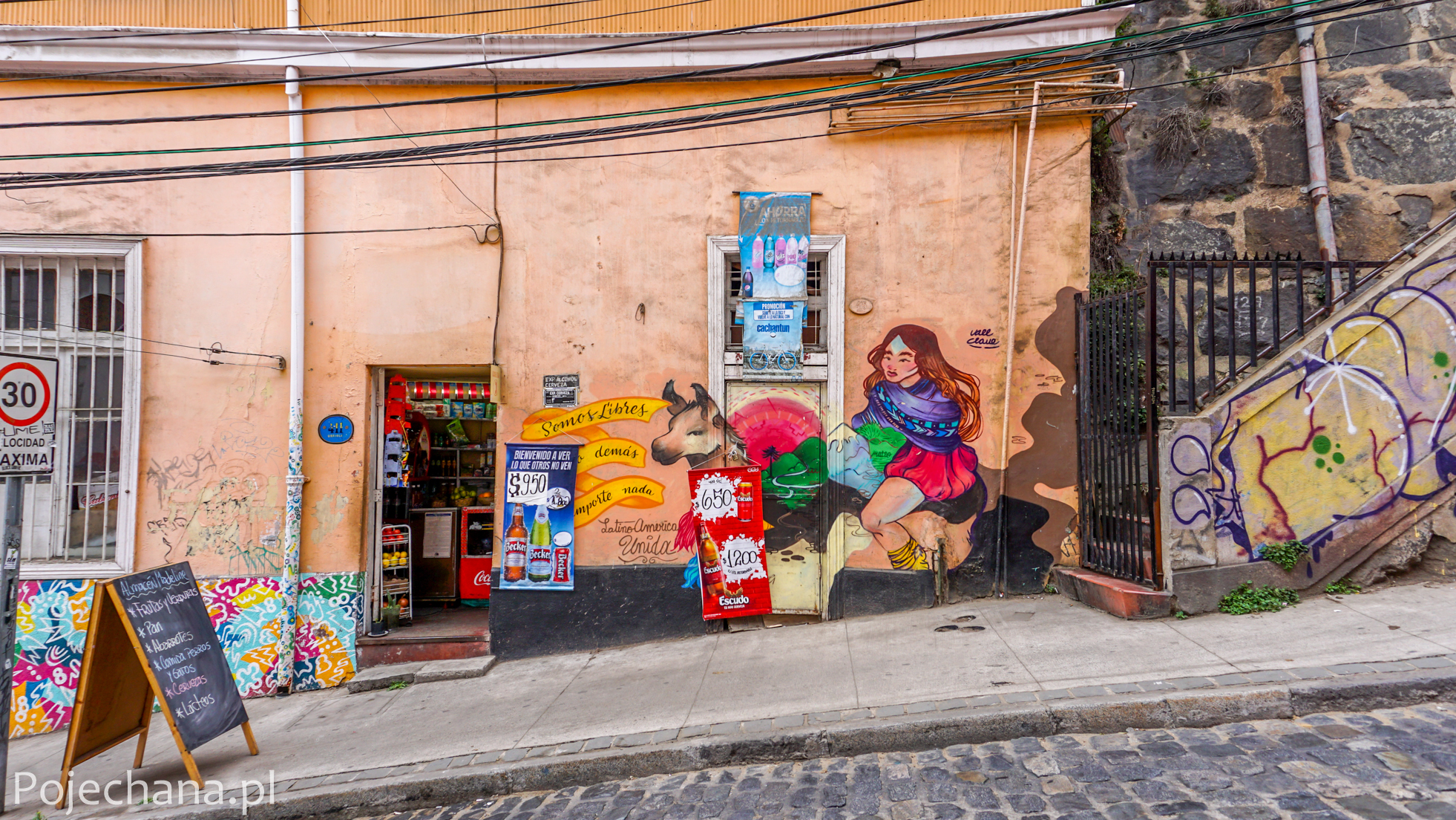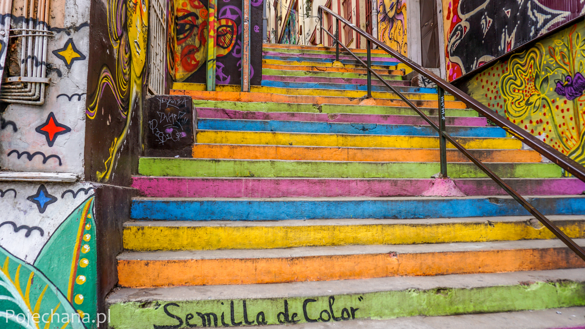 Jeśli będziecie kiedyś w Santiago de Chile, koniecznie wybierzcie się do oddalonego o zaledwie 120 km Valparaiso – położonego na 43 wzgórzach, największego kurortu morskiego w Chile, ukochanego miasta noblisty Pablo Nerudy i kulturalnej stolicy kraju, w której można podziwiać jedne z najlepszych dzieł street-artu w Ameryce Południowej.