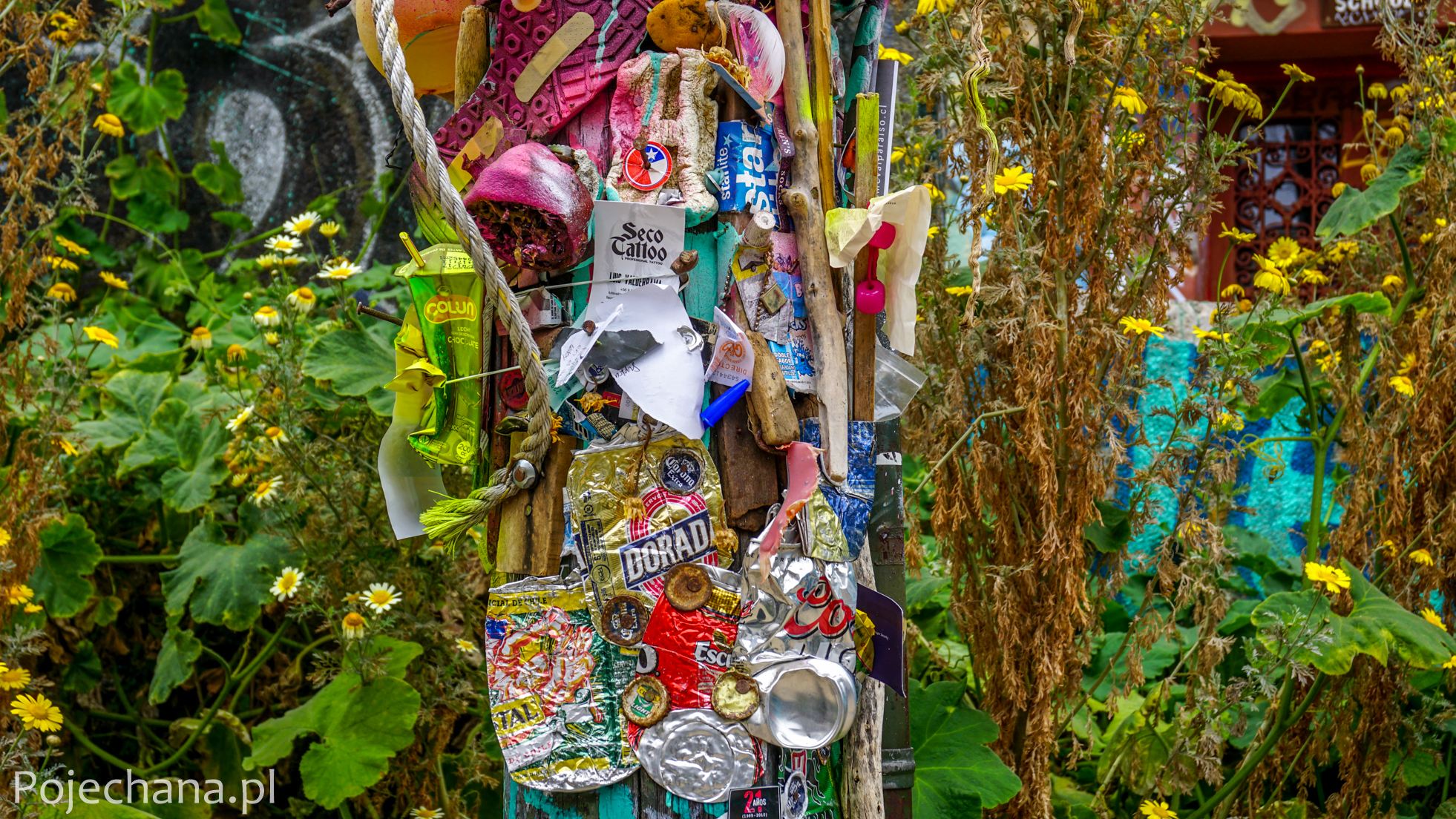 Do Valparaiso przyjeżdżam po street-artowe kadry i chwilę wytchnienia od tłoku i zgiełku Santiago (gdzie próbuję sprzedać mój dom na czterech kołach przed powrotem do Europy). Aura jednak nie rozpieszcza moich fotograficznych ambicji: z szarego nieba siąpi obrzydliwa mżawka, od oceanu wieje zimny, wilgotny wiatr. Pstrykam trochę fotek w słynących z fasad domów pokrytych prawdziwymi dziełami nowoczesnej sztuki dzielnicach Alegre, Concepcion i Bellavista, jadę w obowiązkową przejażdżkę kolejko- windą w starym stylu (ascensores szybko, tanio i widokowo przenoszą pasażerów między kolejnymi wzgórzami) i zahipnotyzowana obłędnymi muralami, kolorowymi detami, maleńkimi ekspresjami wolnej myśli i szalonymi instalacjami artystycznymi w rejonie 21 de Mayo, chowam aparat i pozwalam się sobie zgubić.